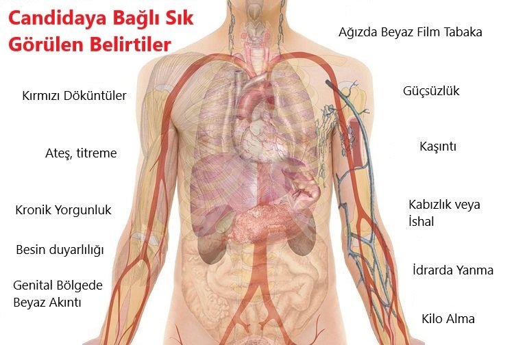 Şişkinlik, mantar enfeksiyonları, halsizlik, tatlı isteği ve beyin sisi candida enfeksiyonunun göstergeleridir.